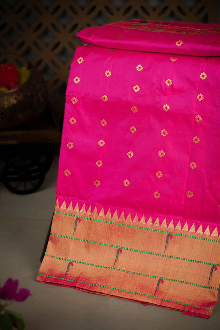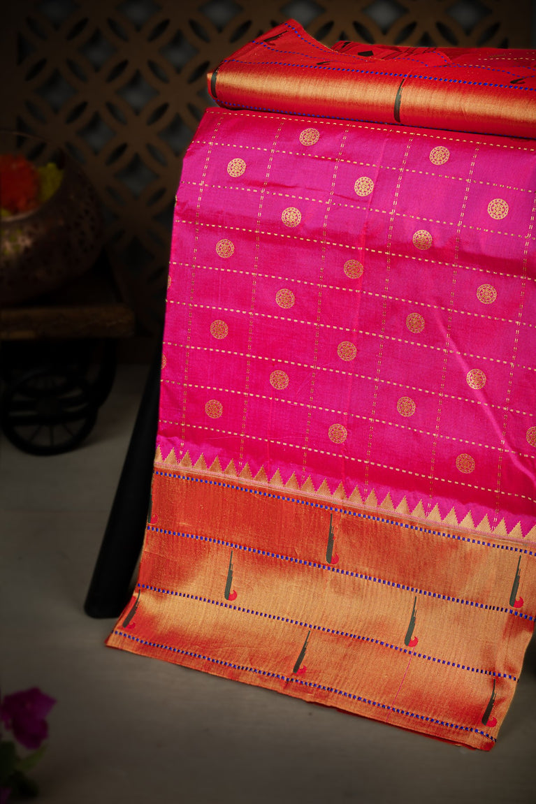 Varamahalakshmi Pink & Gold and Red Paithani Buttis Saree