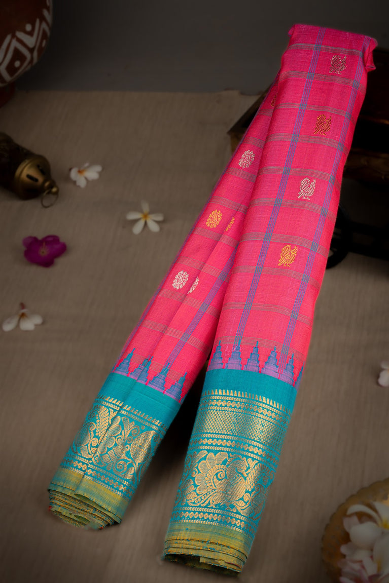 Varamahalakshmi Pink & Sea Green Gadwal Checks And Buttis Saree