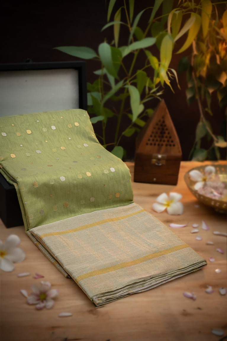 Varamahalakshmi Pista Green & Gold Chanderi Buttis Saree