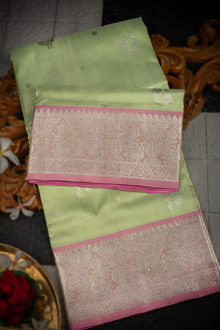 Varamahalakshmi Pista Green & Light Pink Venkatagiri Buttis Saree