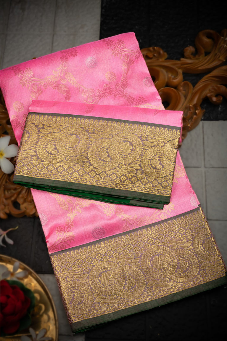 Varamahalakshmi Pink & Dark Green Banarasi Buttis Saree