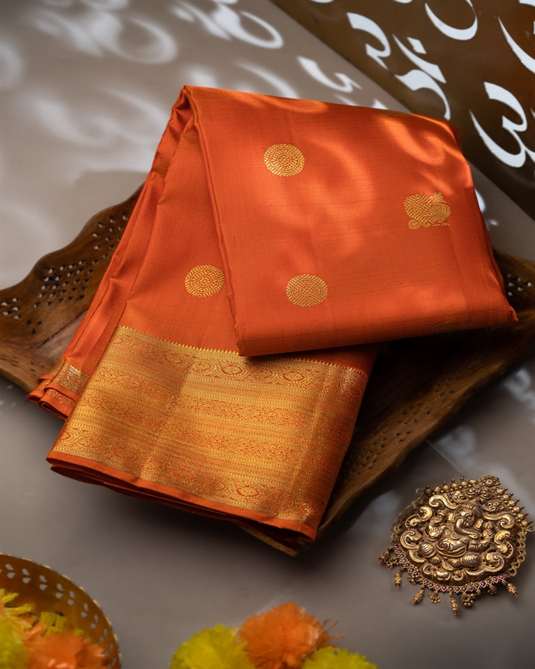 Varamahalakshmi Rust Orange & Rust Orange Kanchipuram Buttis Saree