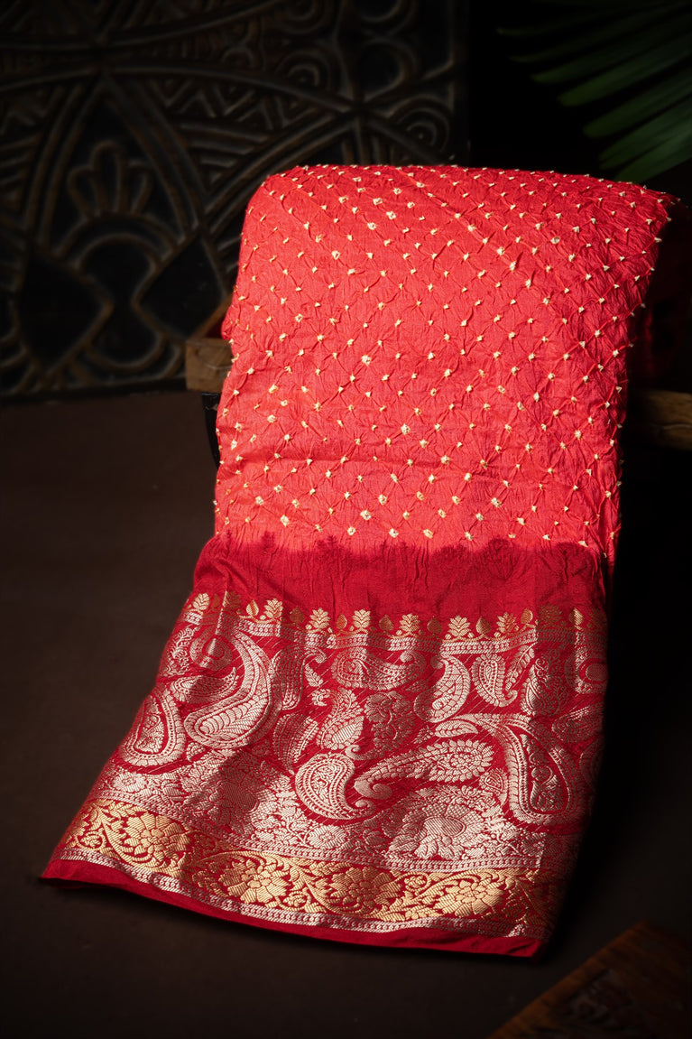 Varamahalakshmi Salmon Pink & Maroon Bandhani Bandhani Saree