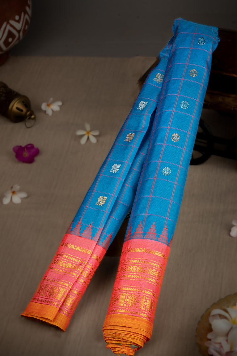 Varamahalakshmi Royal Blue & Sea Green Venkatagiri Checks And Buttis Saree