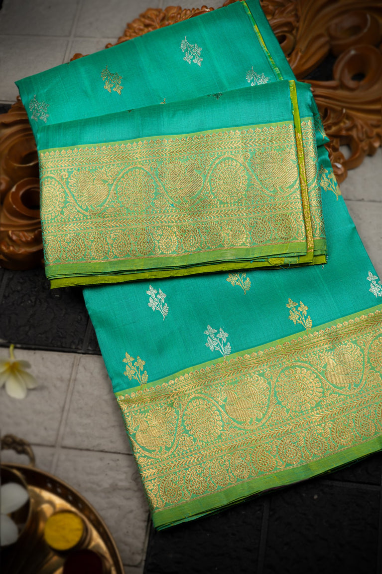 Varamahalakshmi Sea Green & Royal Blue Kancheepuram Buttis Saree