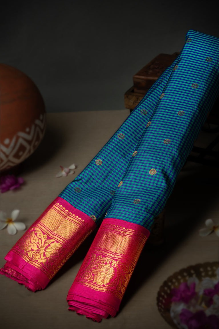 Varamahalakshmi Sea Green & Pink Gadwal Checks And Buttis Saree
