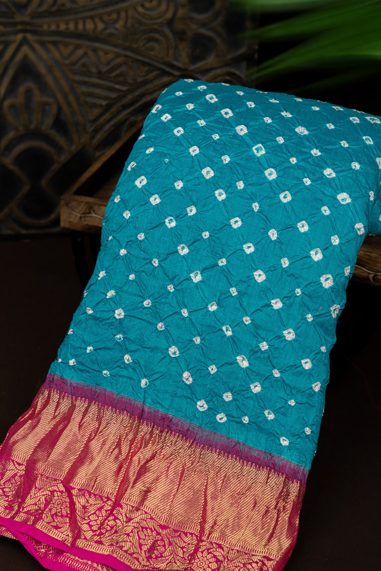 Varamahalakshmi Teal & Pink Bandhani Bandhani Saree