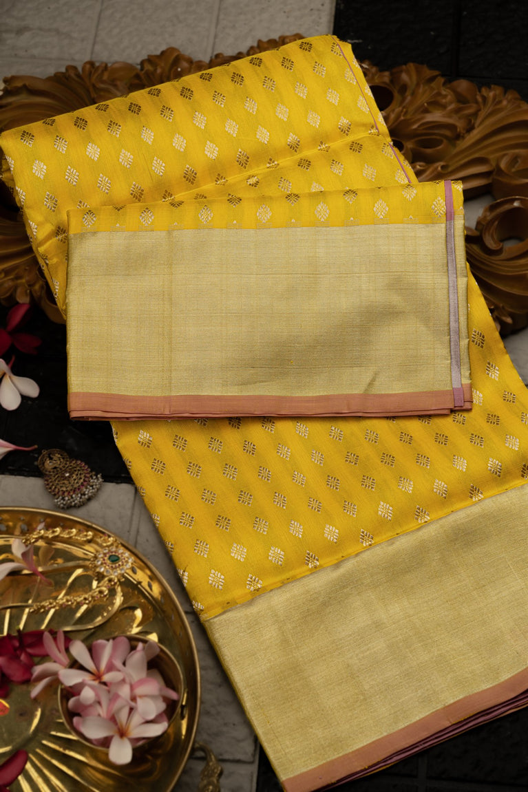 Varamahalakshmi Yellow & Blush Pink and Beige Uppada Buttis Saree