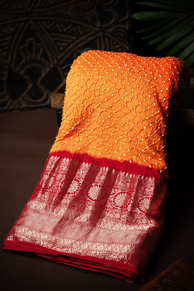 Varamahalakshmi Tangy Orange & Maroon Bandhani Bandhani Saree