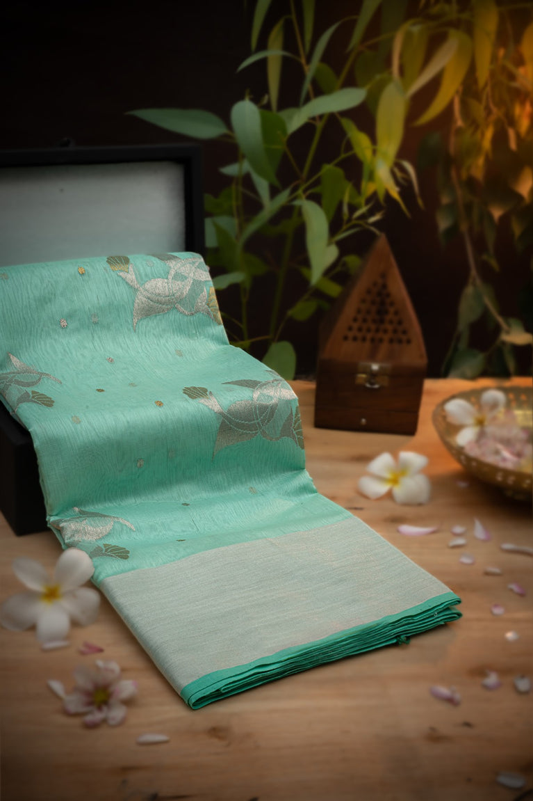 Varamahalakshmi Turquoise & Silver Chanderi Motifs Saree