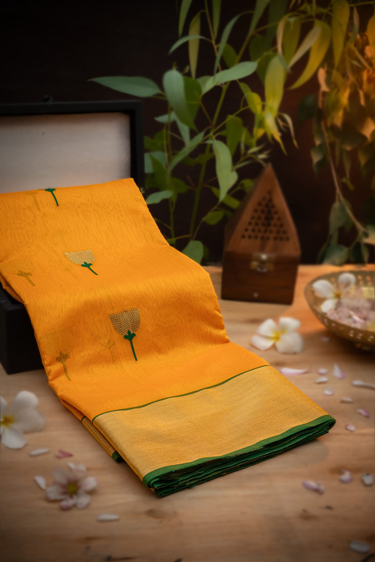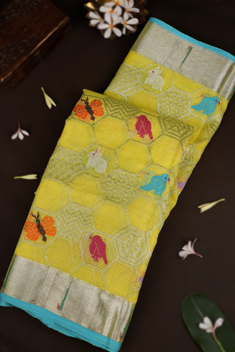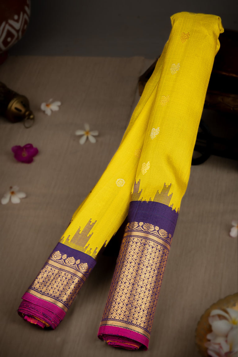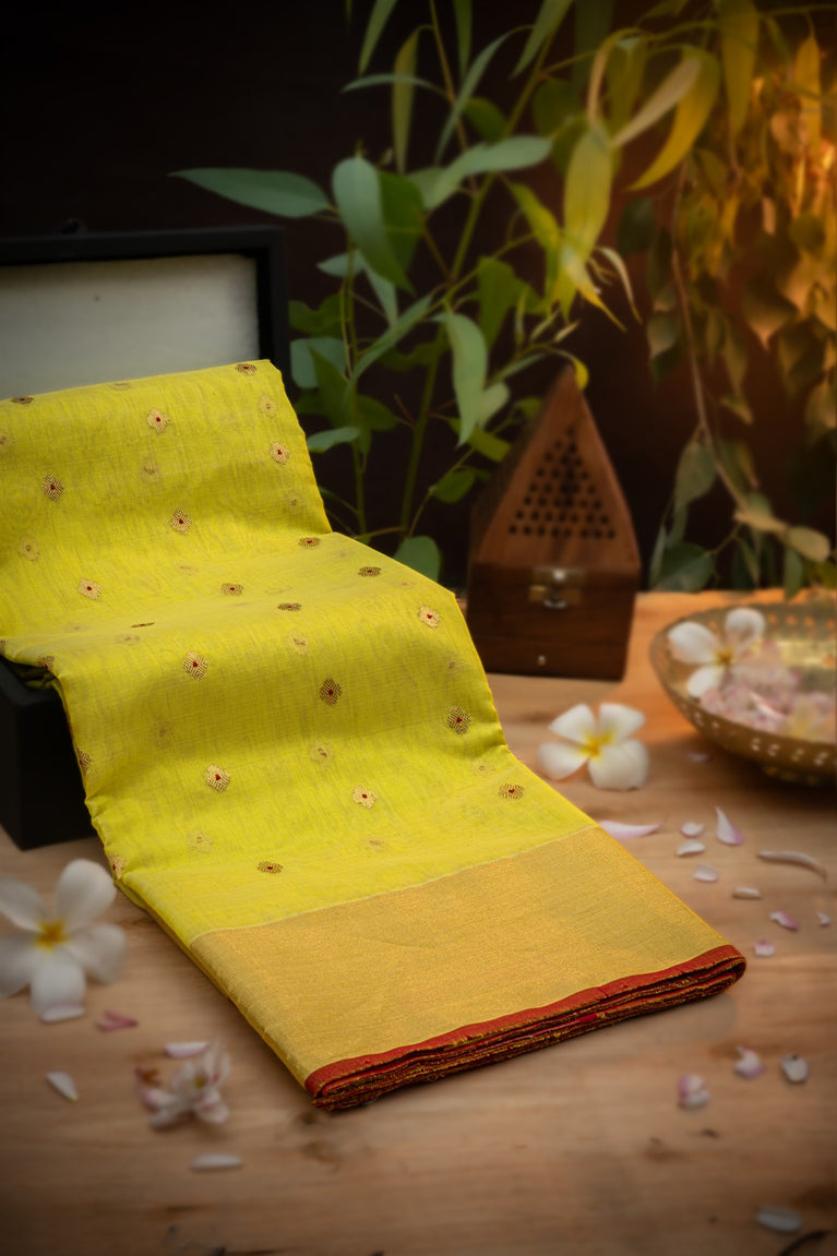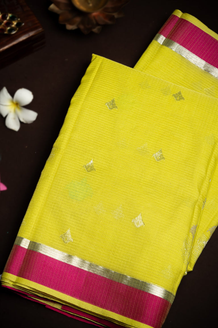 Varamahalakshmi Yellow & Rama Green Zari Kota Buttis Saree