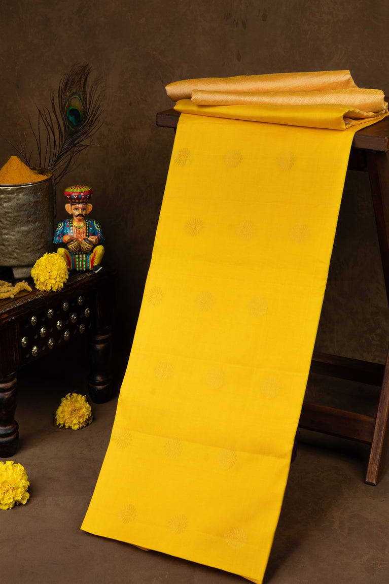 Varamahalakshmi Yellow & Light Peach Coimbatore Floral Buttis Saree