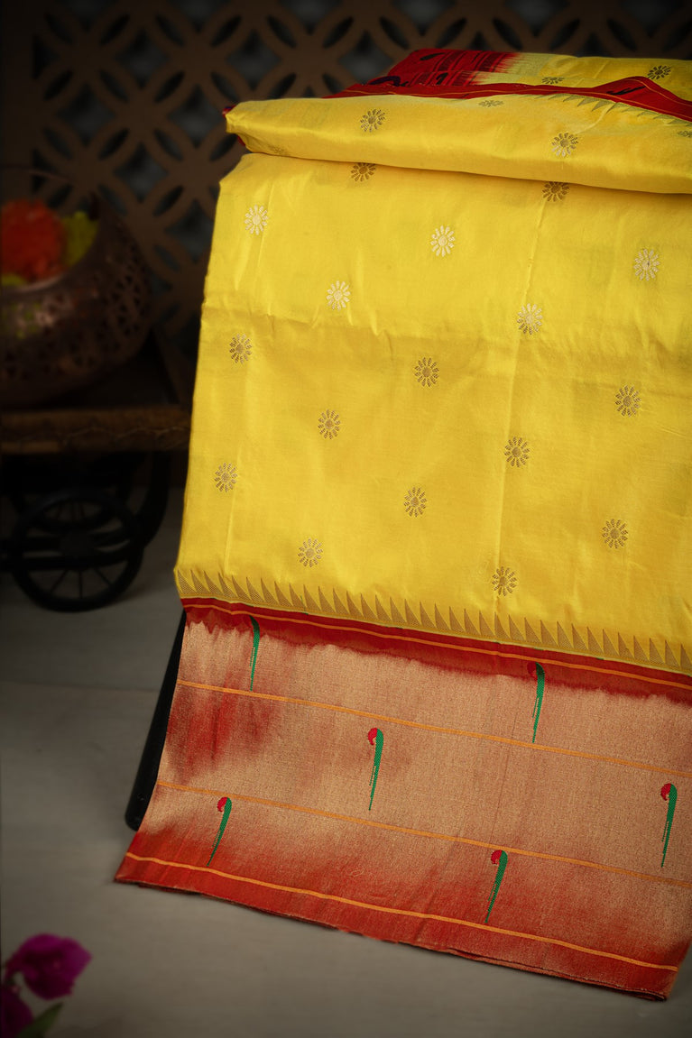 Varamahalakshmi Yellow & Gold and Red Paithani Buttis Saree