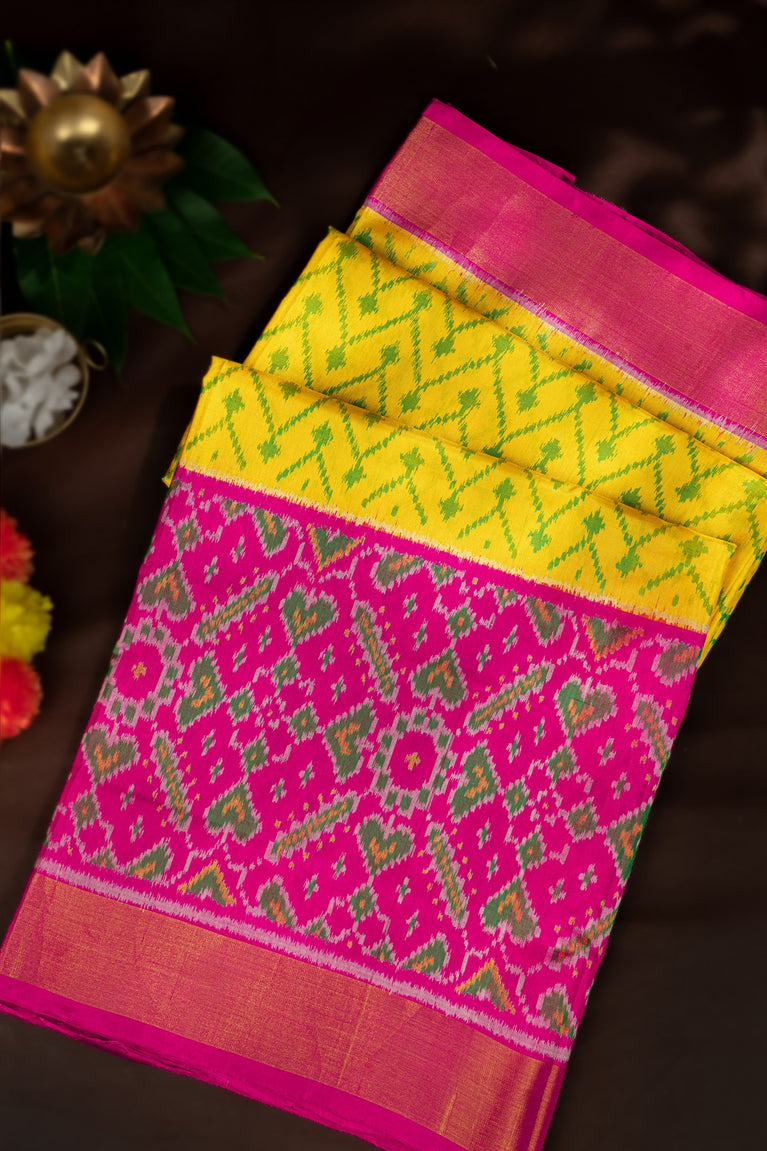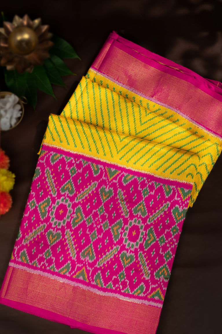 Varamahalakshmi Yellow & Pink Patola Ikat Saree