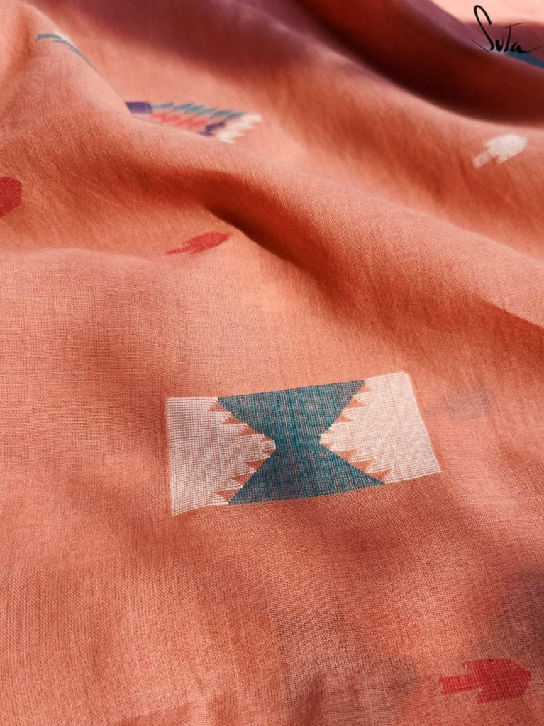 Jamdani is also referred to as extra-weft ornamentation, on-loom embroidery, or discontinuous weft. The patterns are developed on graph paper and fastened under the warp. A weaver then painstakingly works the on-loom embroidery using needles or extra weft shuttles, creating each motif individually. Jamdani fabrics feel delicate and opulent while also being light, comfortable and very fashion-forward.