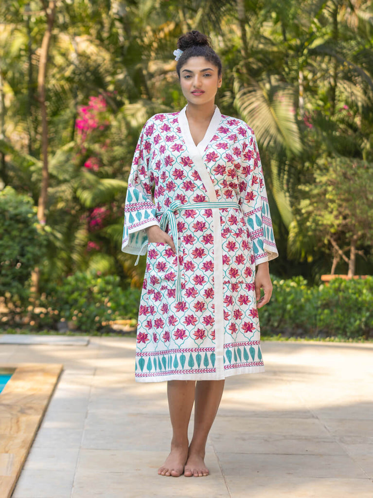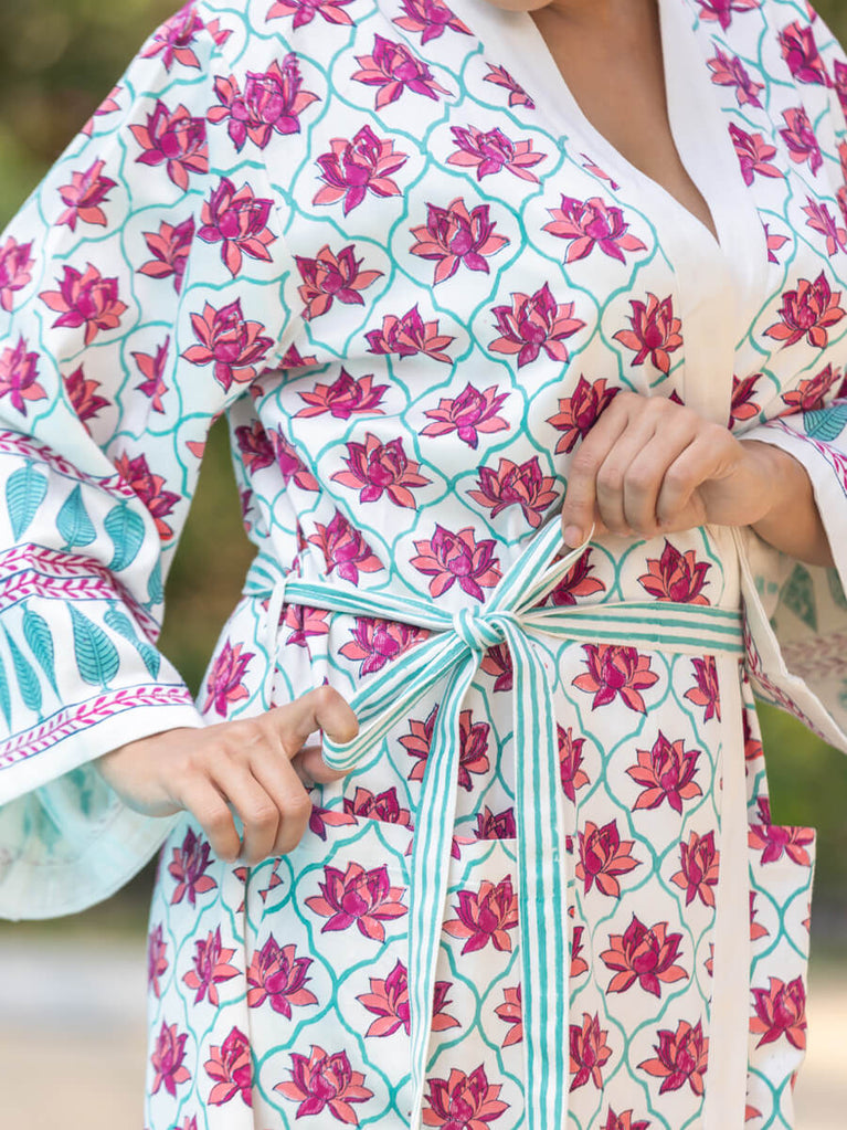 Lavender Bloom Block Printed Cotton Cushion Cover - 20 Inch