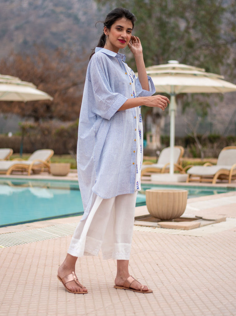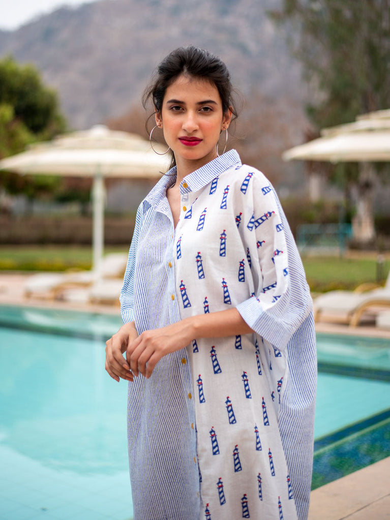 Lighthouse Over-Sized Asymmetrical Cotton Long Shirt