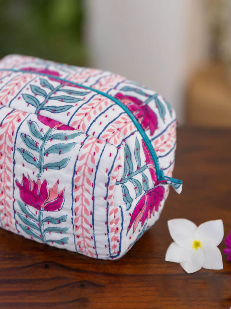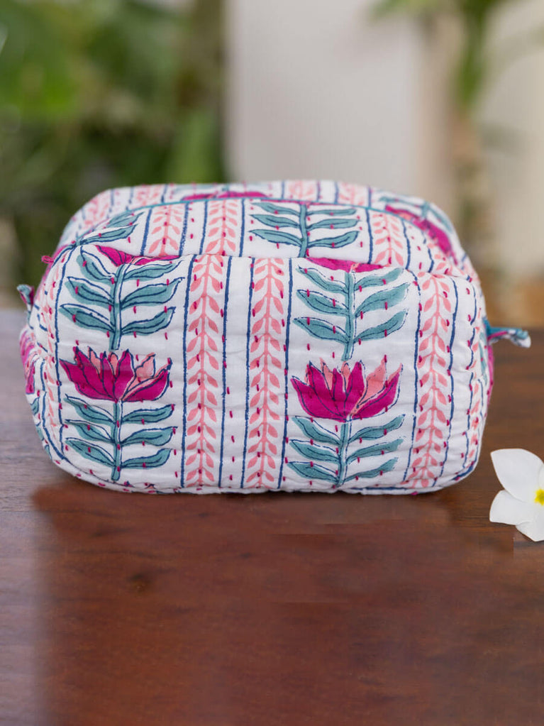 Lotus Jaal Block Printed Cotton Cushion Cover - 16 X 48 Inch