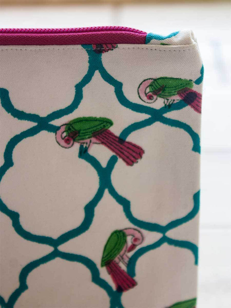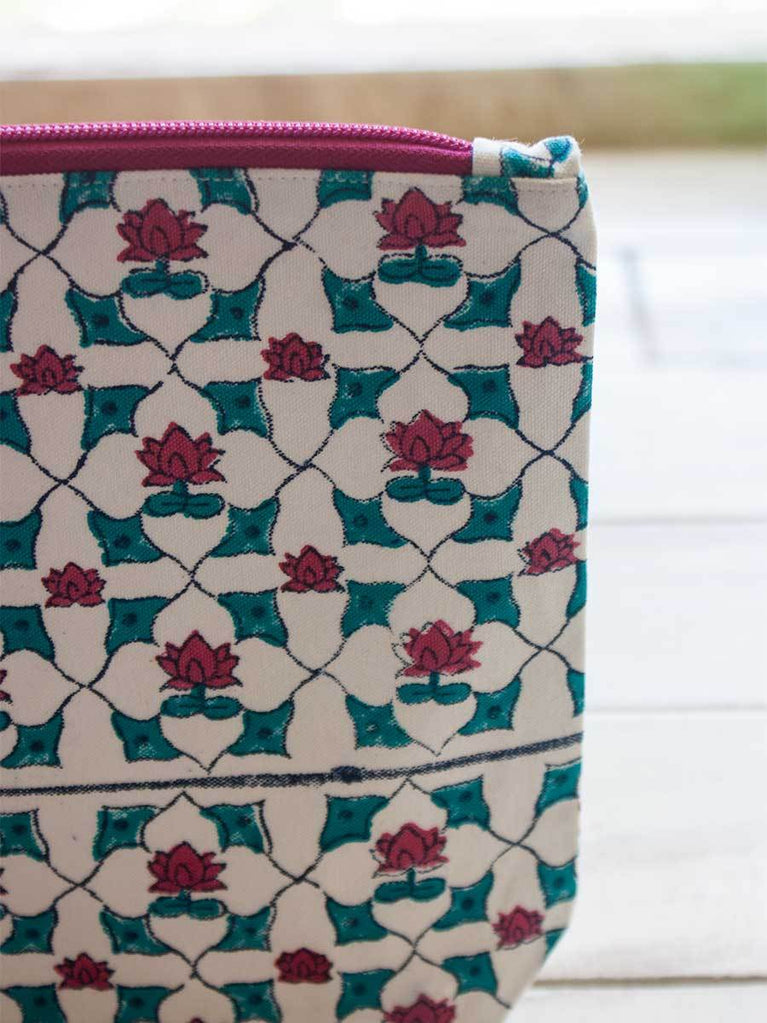 Lotus Love Block Printed Cotton Travel Vanity Case