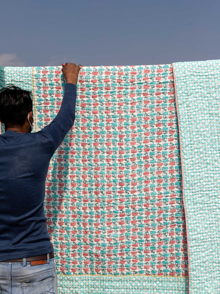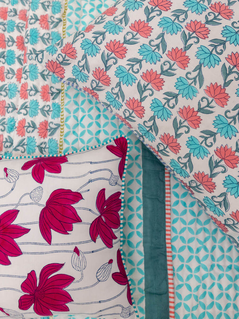 Seahorse Block Printed Cotton Top & Pyjama Set