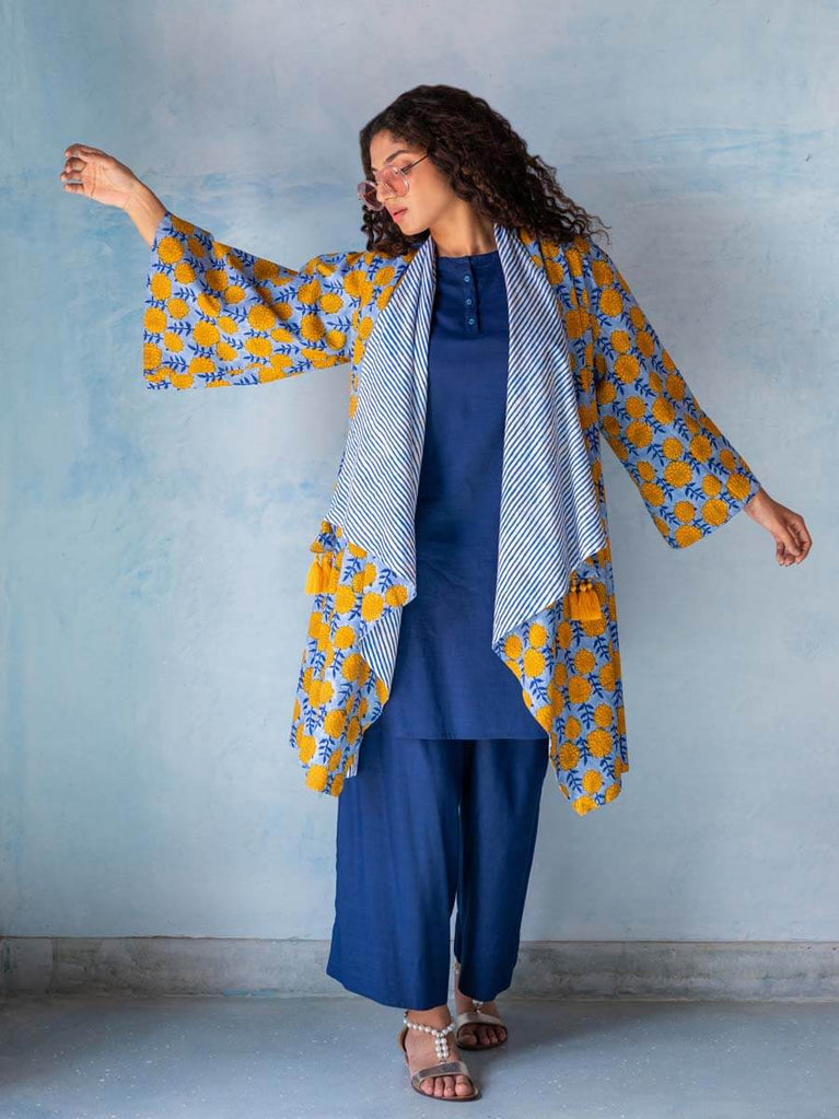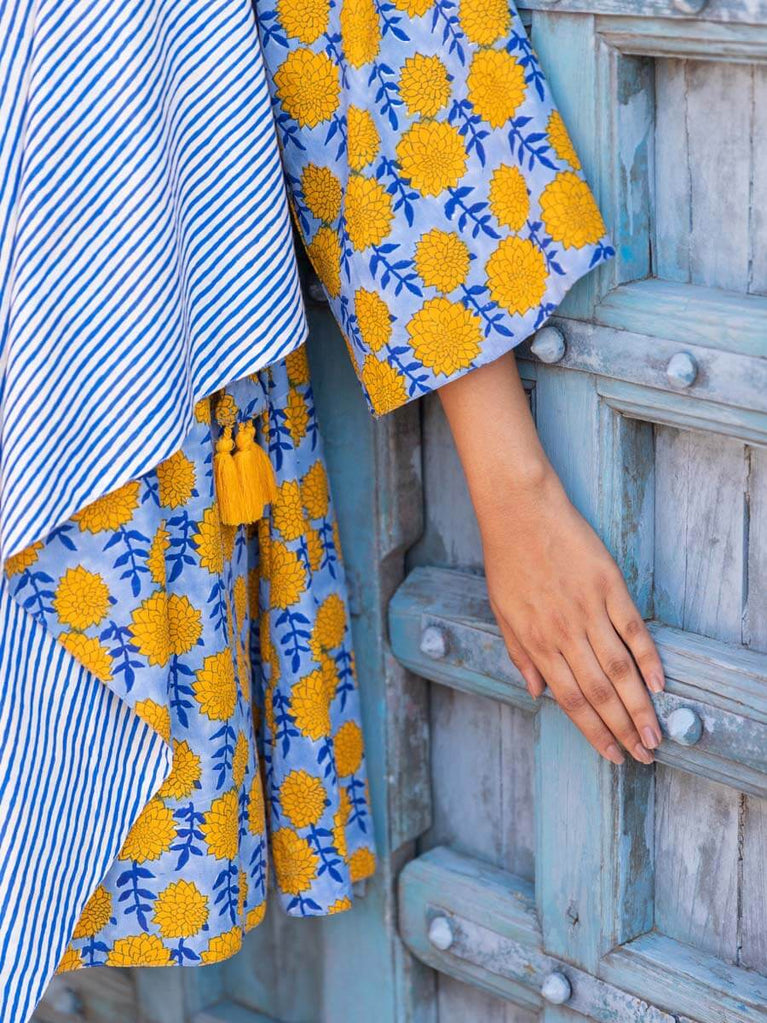 Seahorse Organic Cotton Block Printed Kaftan for Kids