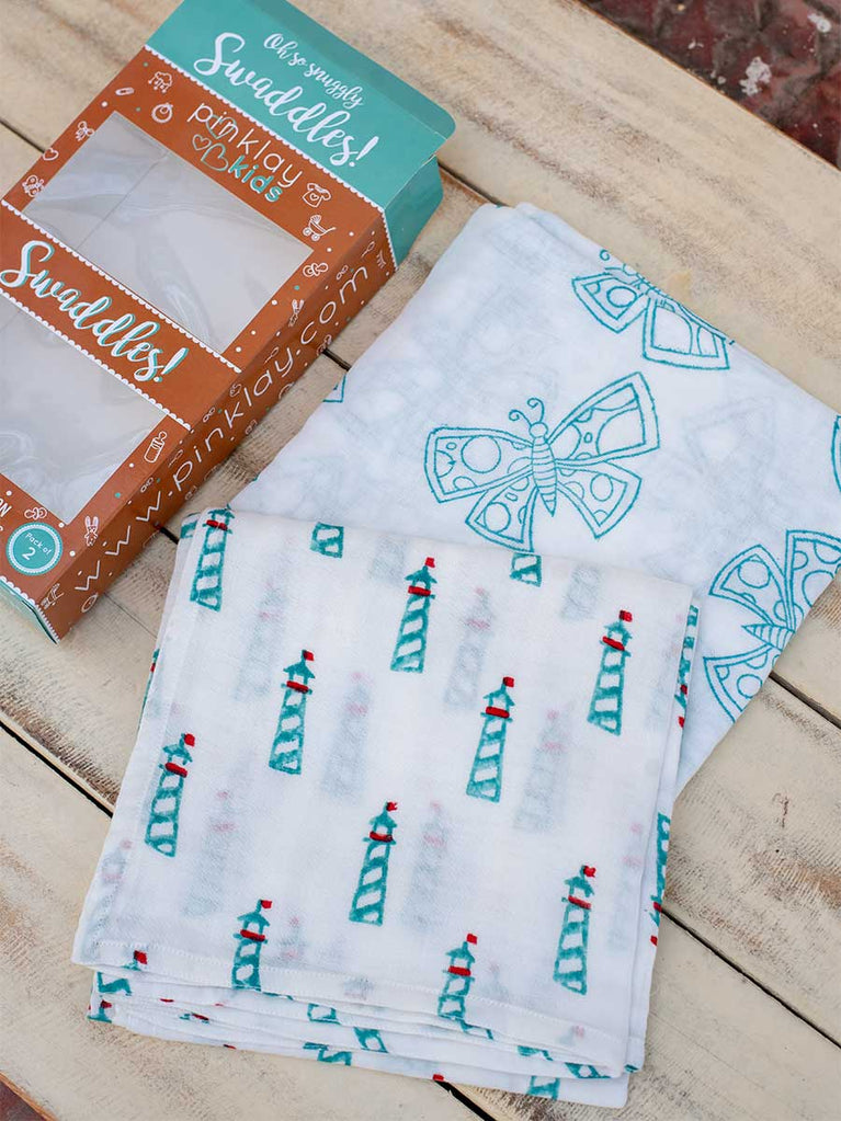 Set of 2 - Butterfly Garden Organic Cotton Muslin Swaddles