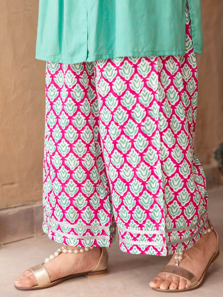 Set of 2 - Bahaar Block Printed Cotton Angrakha Dhoti Set