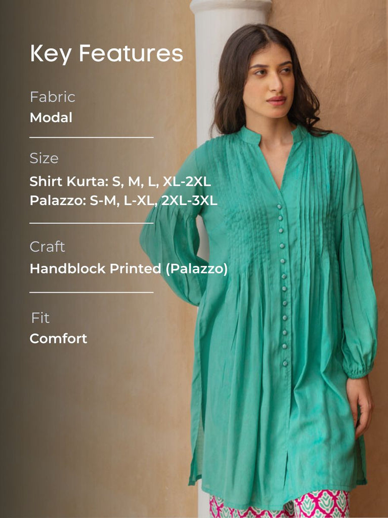 Set of 2 - Ahalya Pintuck Shirt Kurta and Palazzo