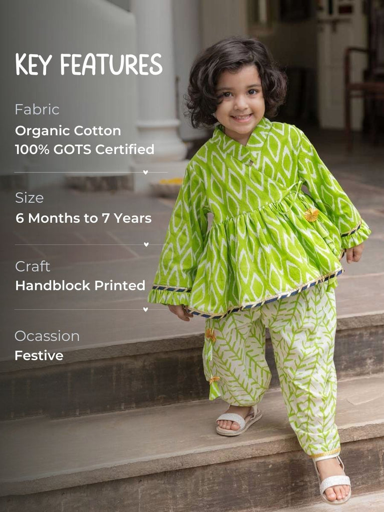 Set of 2 - Polka Dots Organic Cotton Block Printed Top & Pants Set