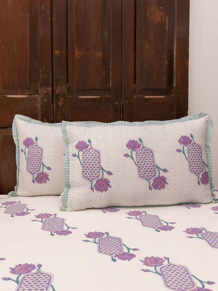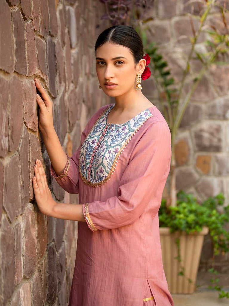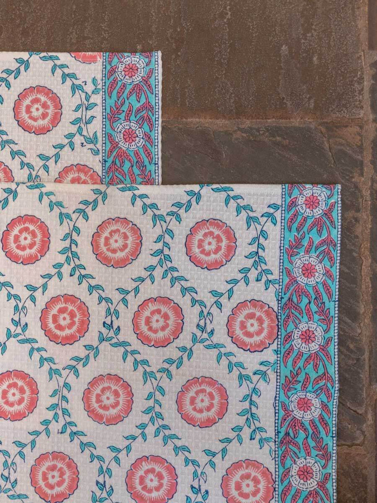 Set of 2 - Rose Block Printed Cotton Angrakha with Dhoti