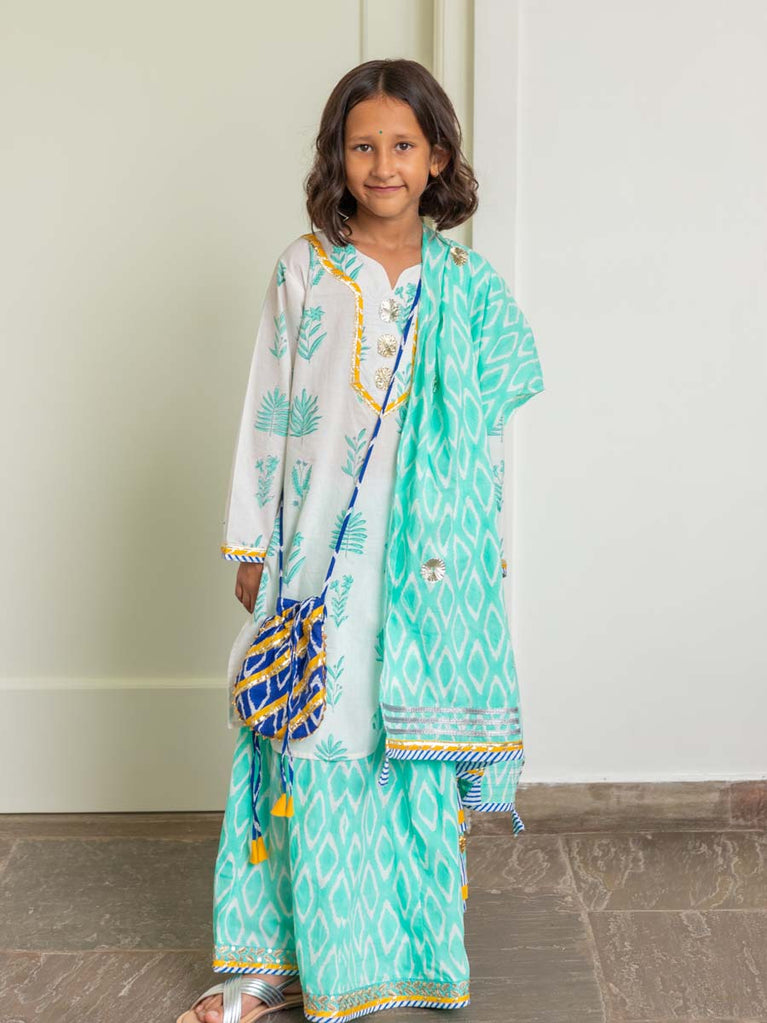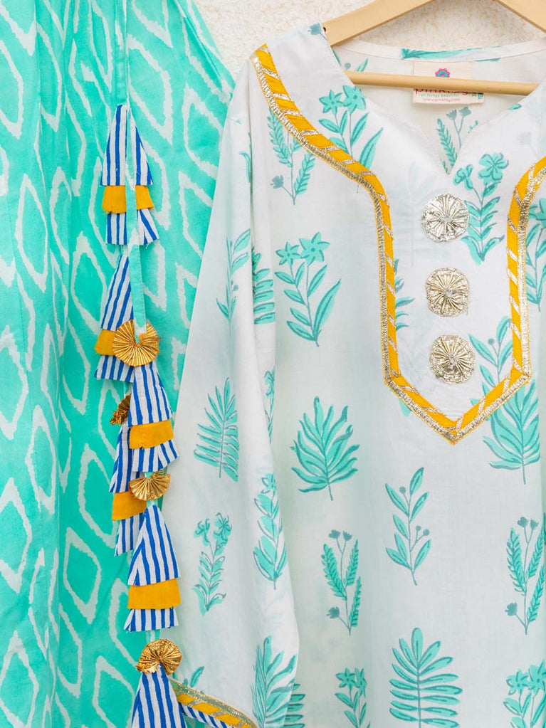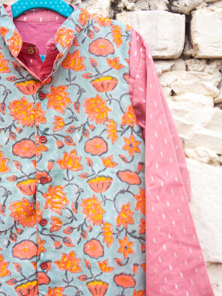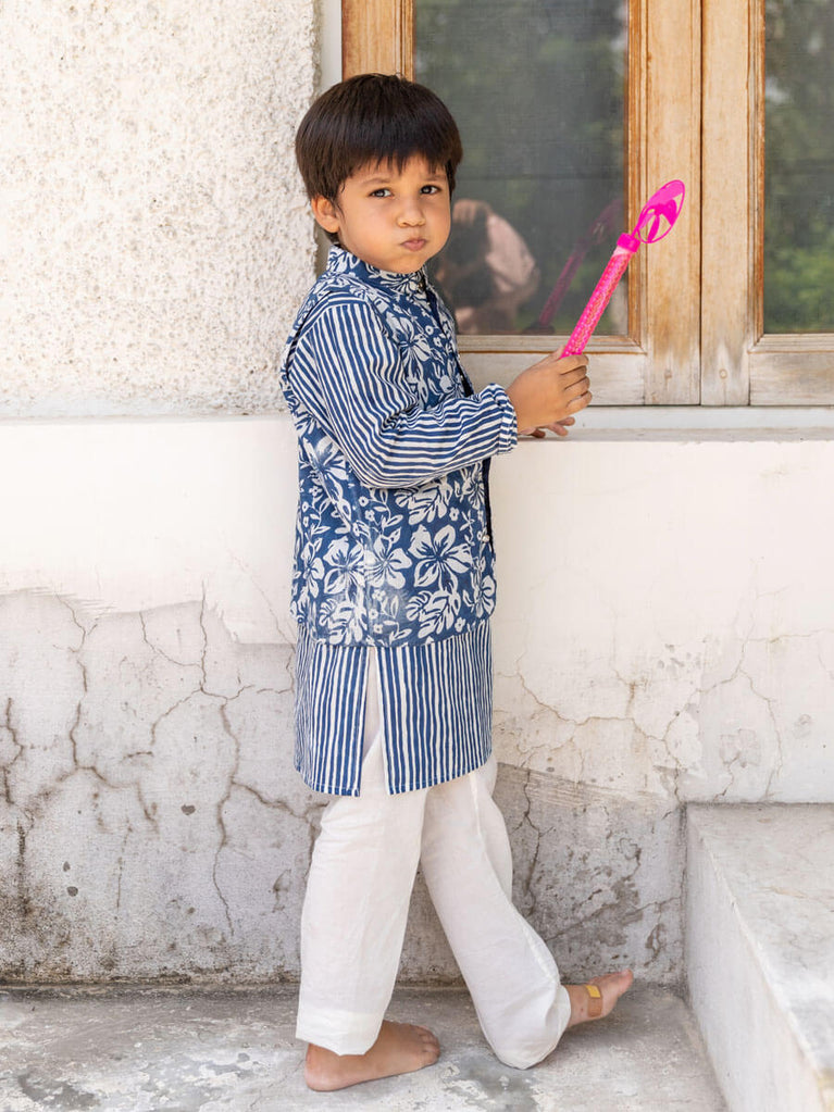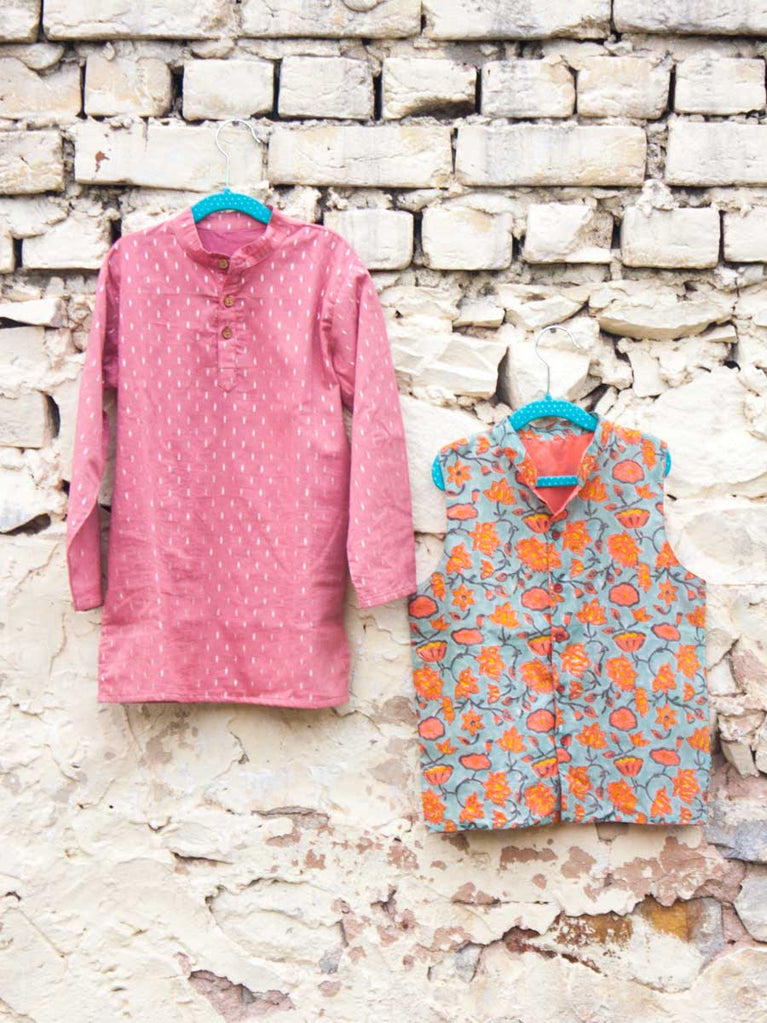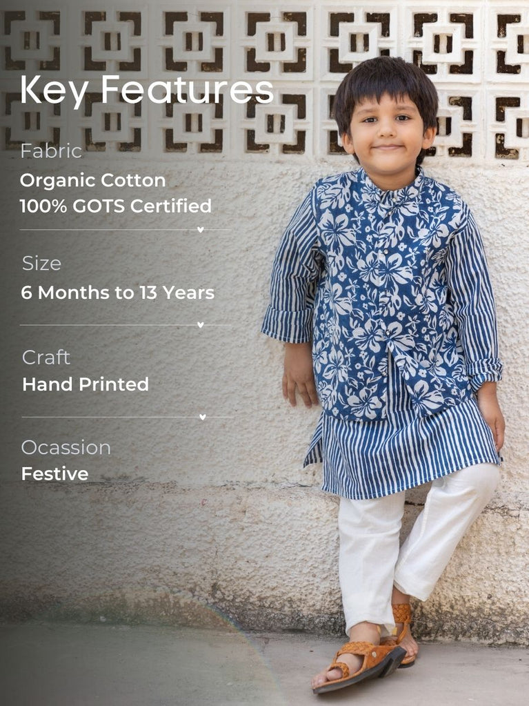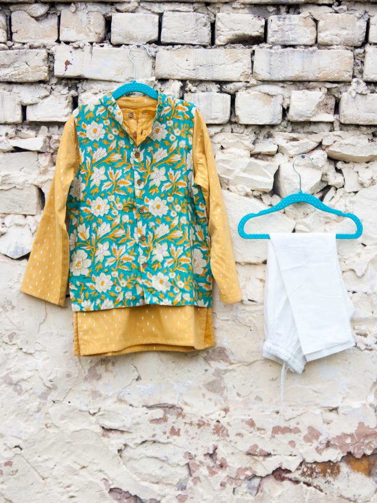 Set of 3 - Tarang Block Printed Kurta With Jacket