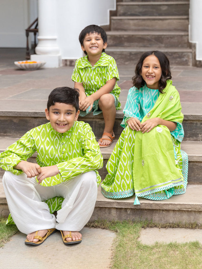 Set of 3 - Pujo Kurta, Lantern Pants and Jacket