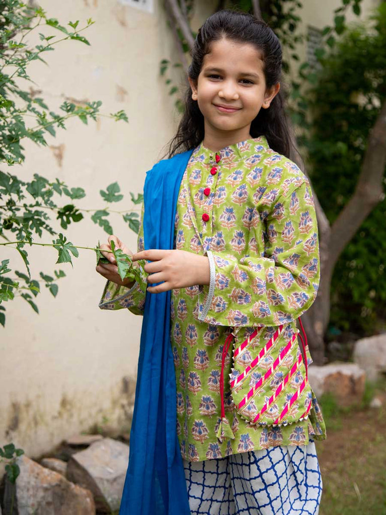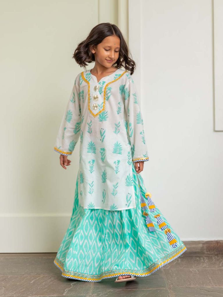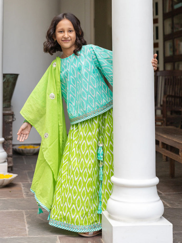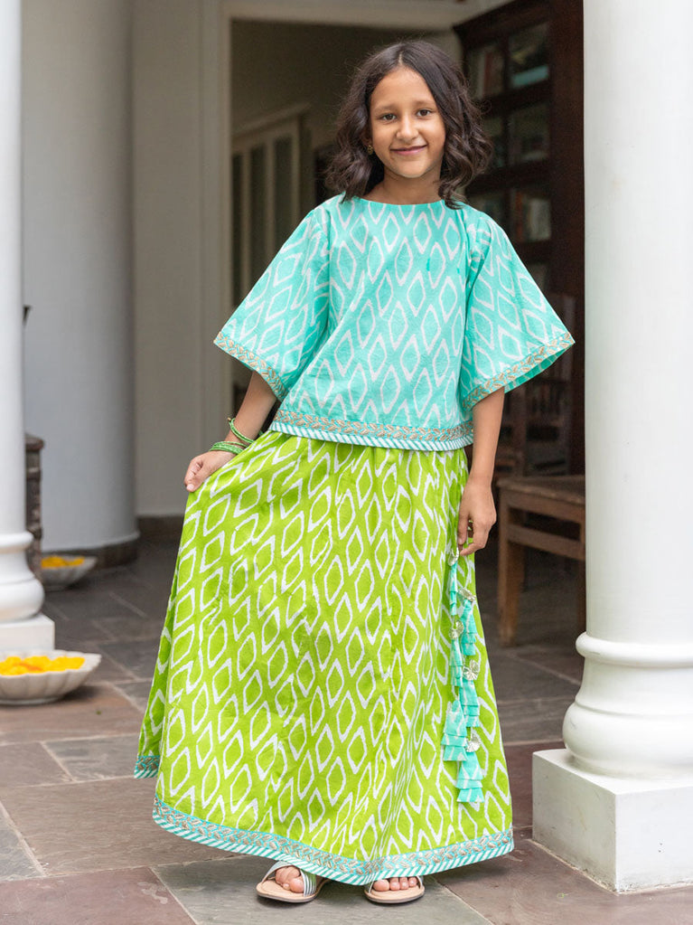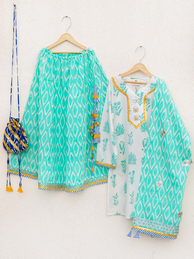 Set of 3 - Lilly Block Printed Cotton Lehanga