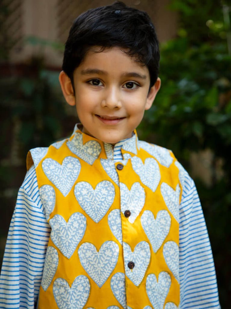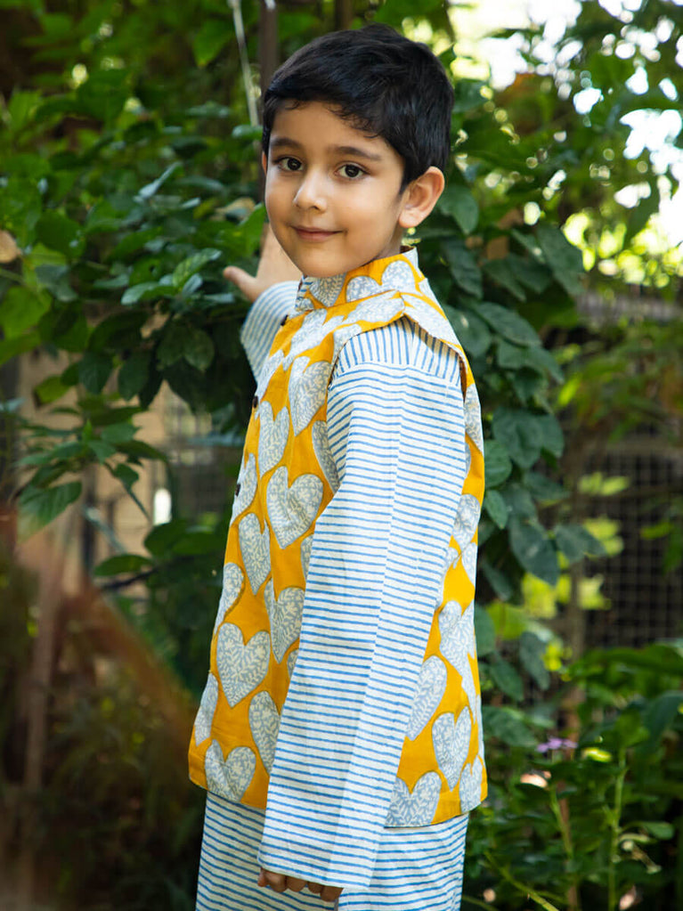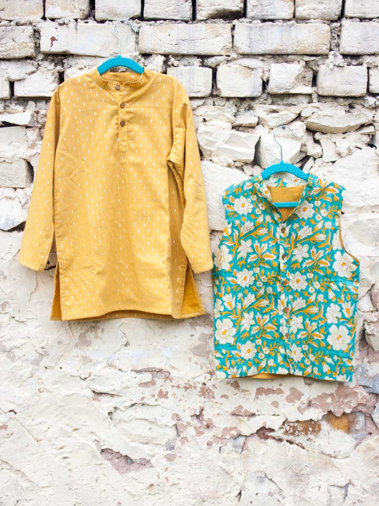 Set of 3 - Sunshine Love Block Printed Kurta With Jacket