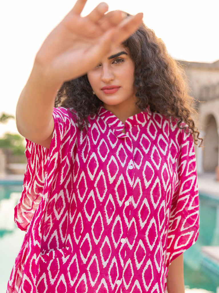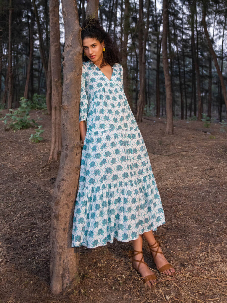 Siyahi Indigo Hand Printed Cotton Kaftan
