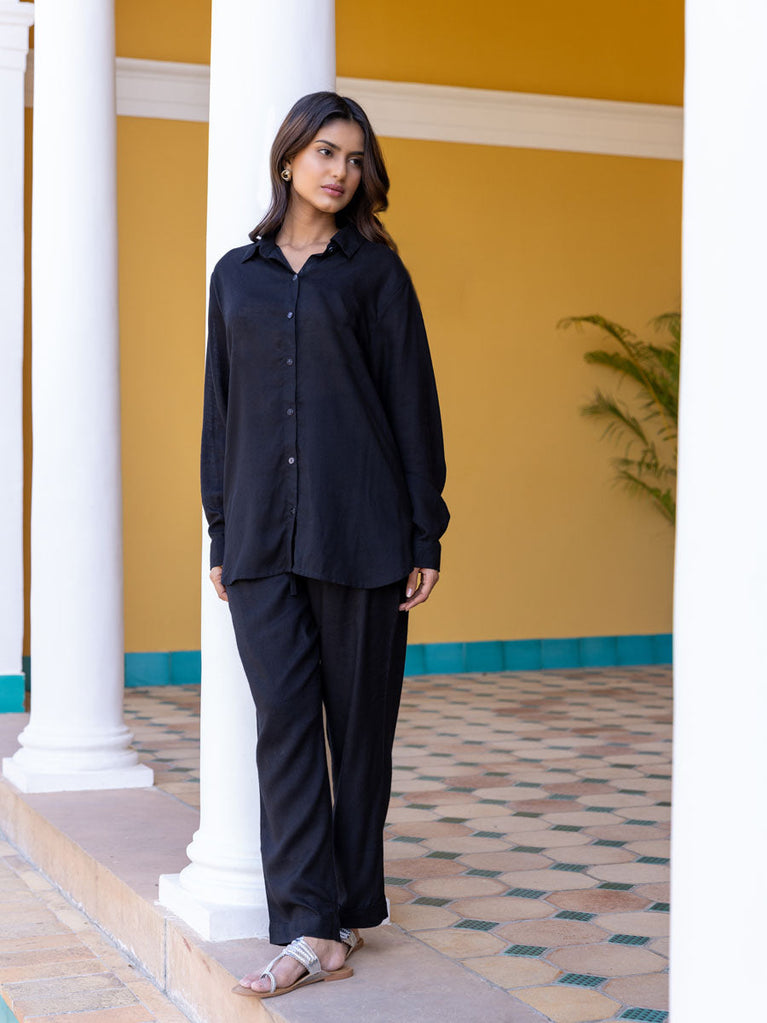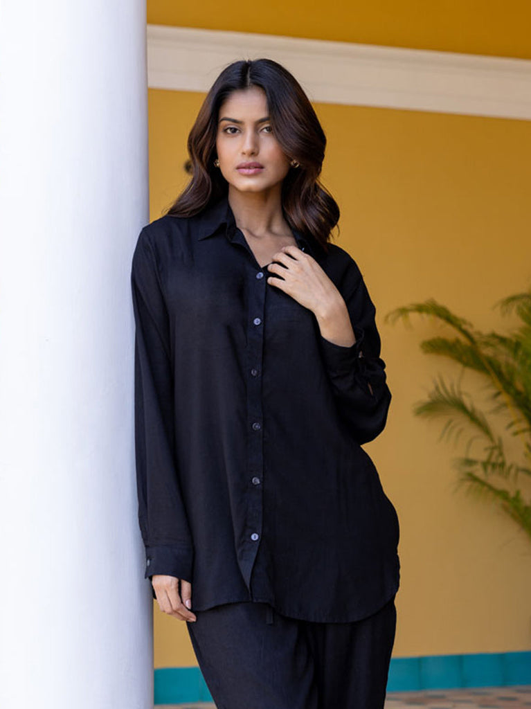 Solid Black Slub Shirt
