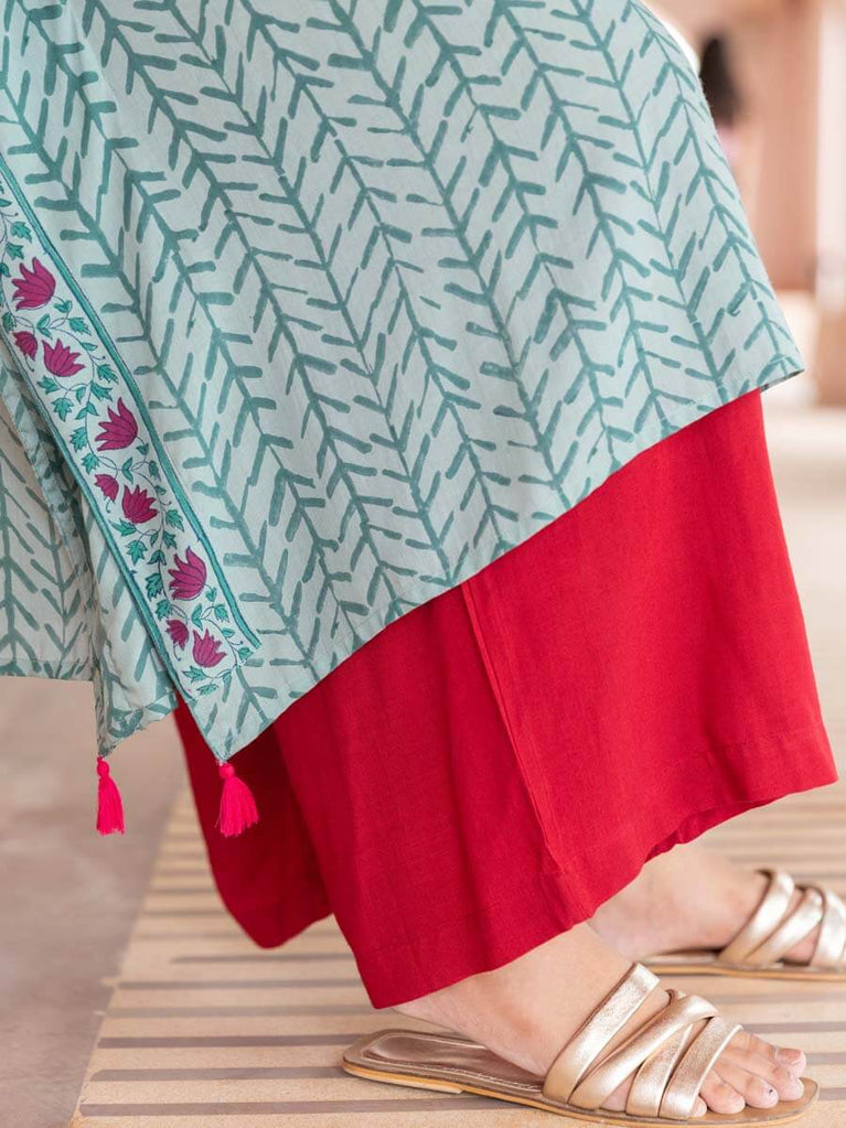 Solid Red Slub Palazzo Pants
