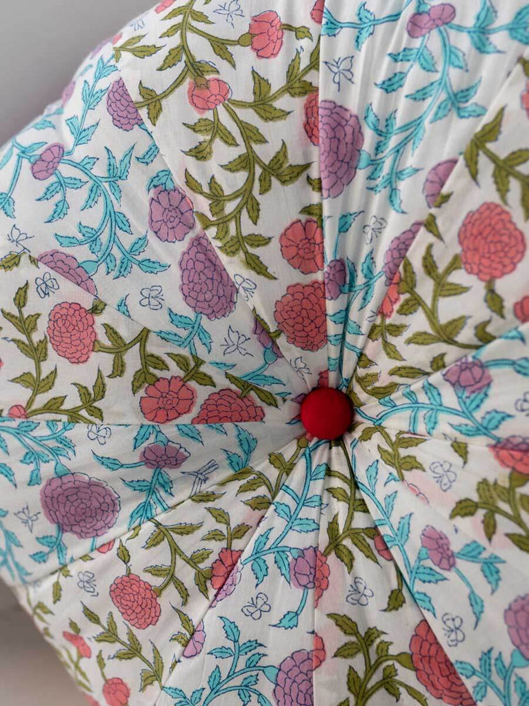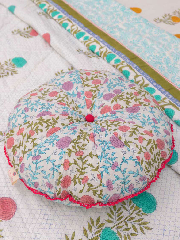 Spring Time Block Printed Cotton Pinwheel Cushion With Filler - 16 Inch