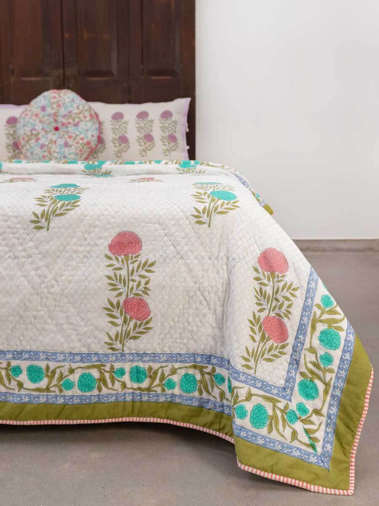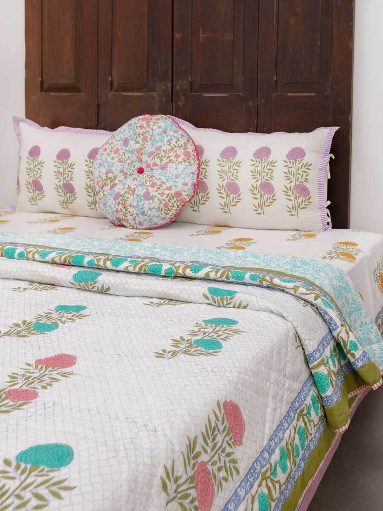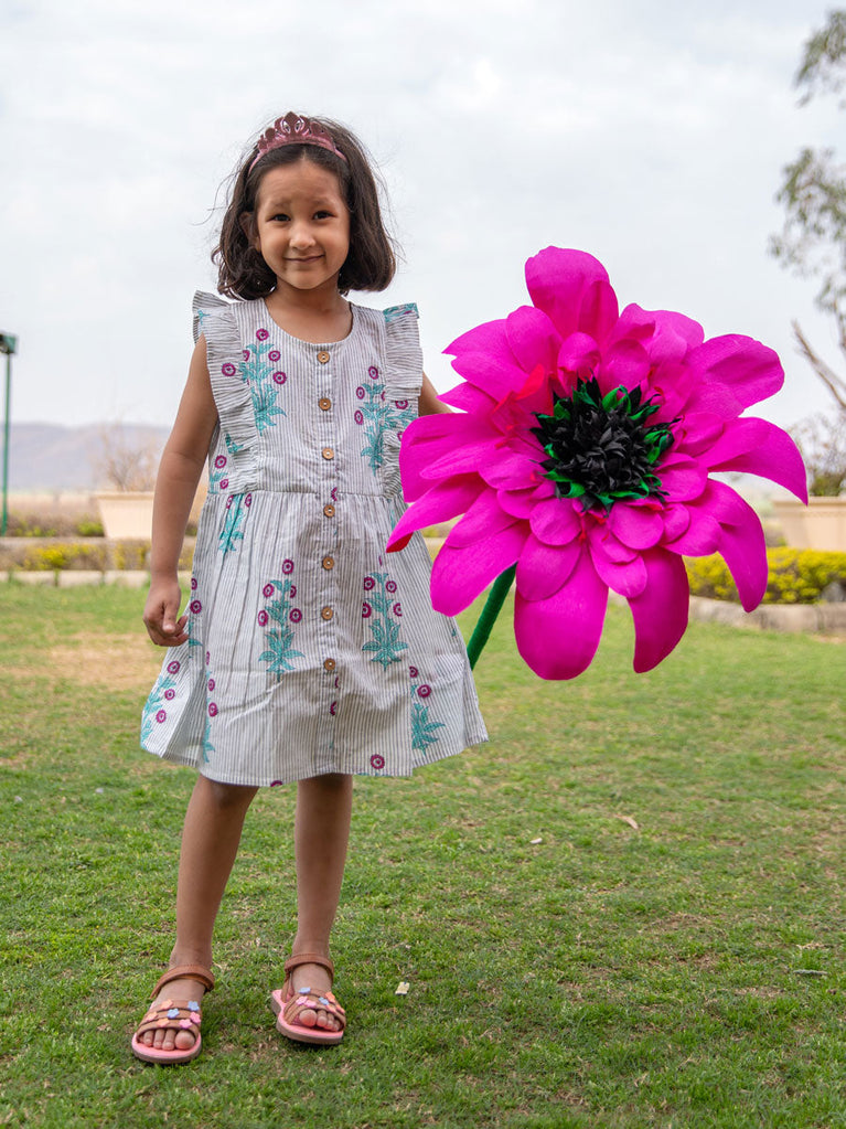 Spring Bloom Sleeveless Block Printed Cotton Dress