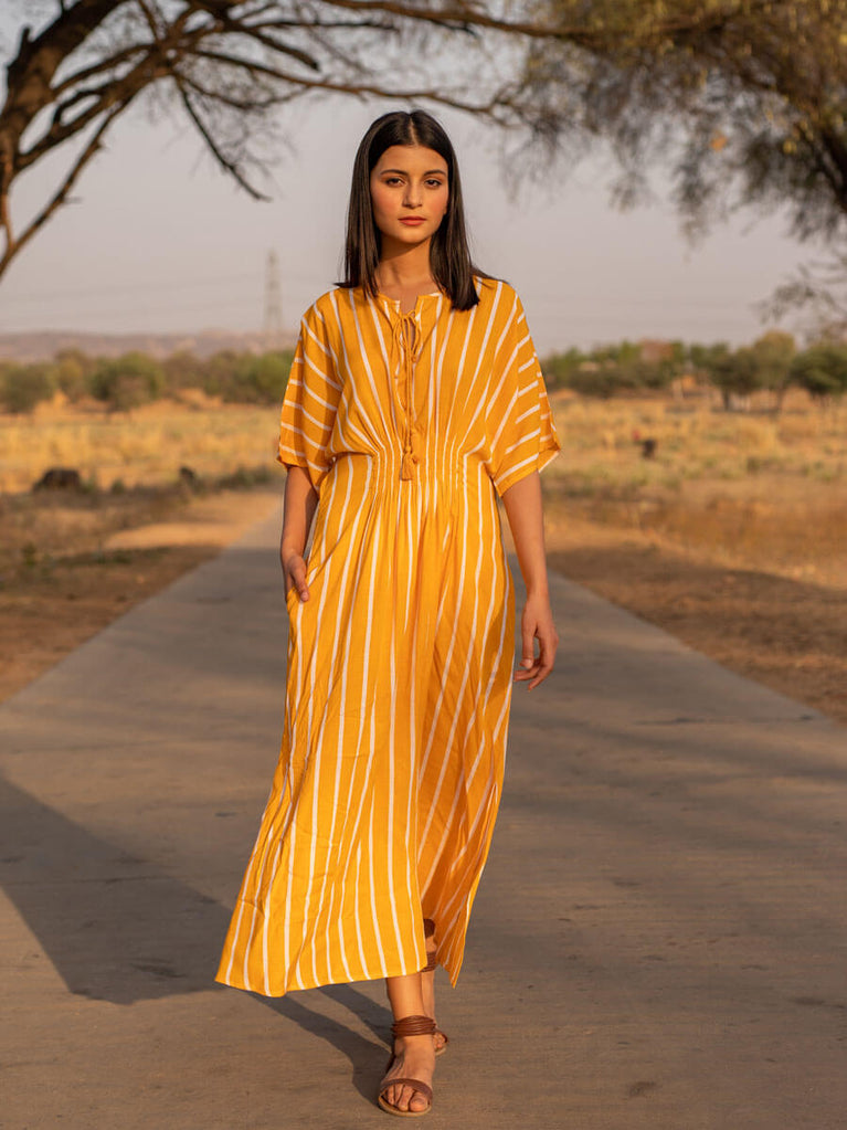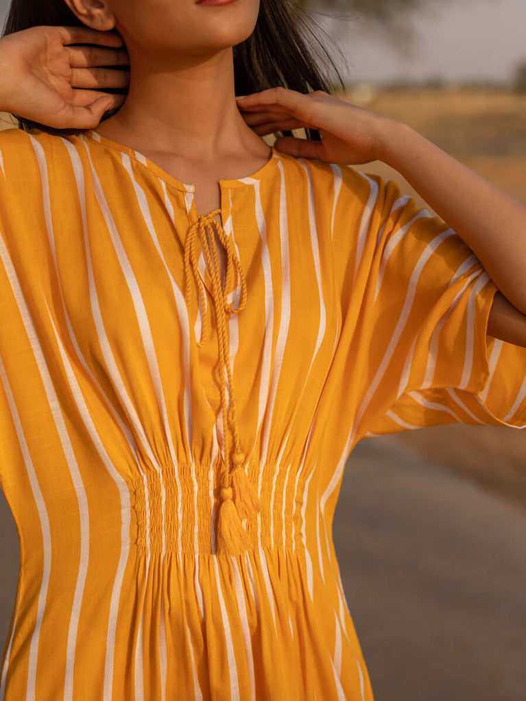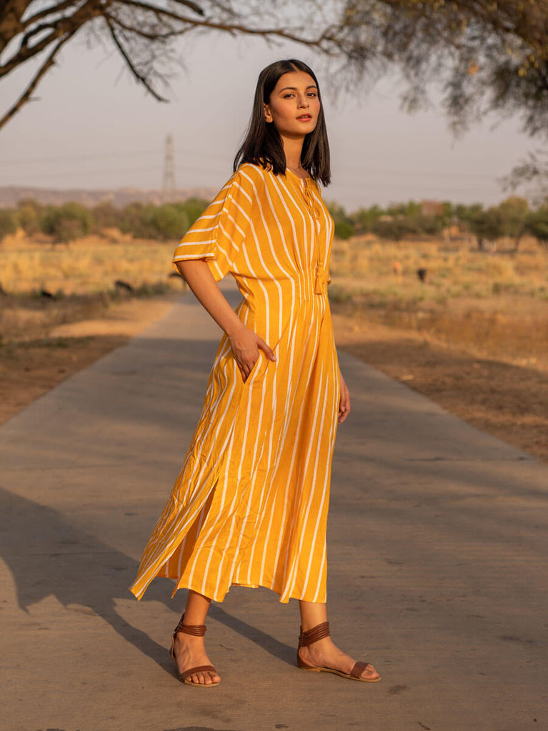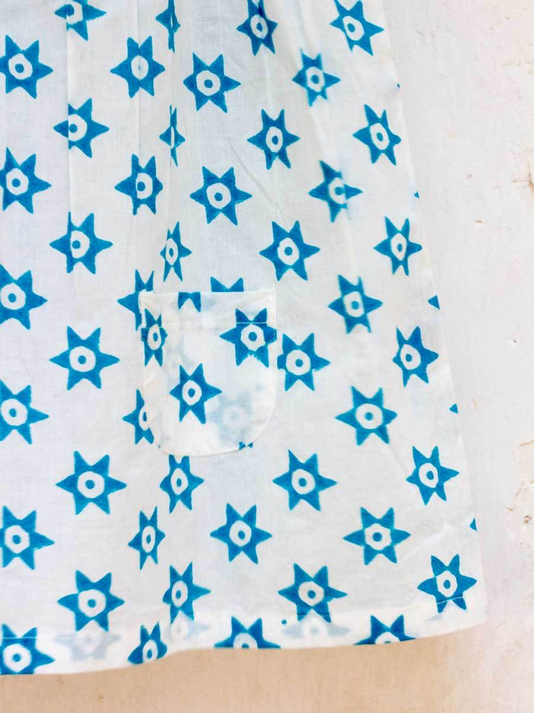 Starry Night Organic Cotton Block Printed Dress with a Pocket