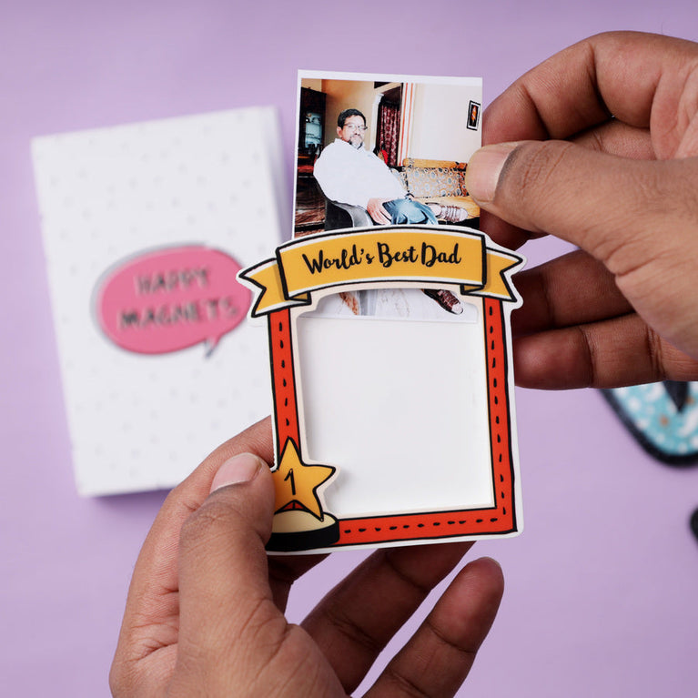 - Pay a tribute to your Desi Dad with an equally desi magnet customised with 4 of his favourite pictures so that he can easily change the photos whenever he like.