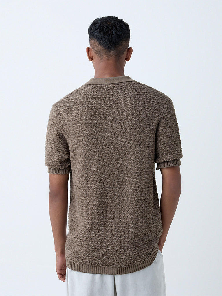 ETA Brown Knit-Textured Relaxed-Fit Polo T-Shirt