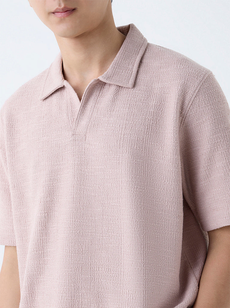 A refined essential with a contemporary twist, this light pink polo t-shirt from ETA brings effortless sophistication to your off-duty style. Woven from a self-textured fabric, it offers breathable comfort in a breezy relaxed profile. The spread collar lends a refined edge, while the short sleeves keep the look casual yet elevated.