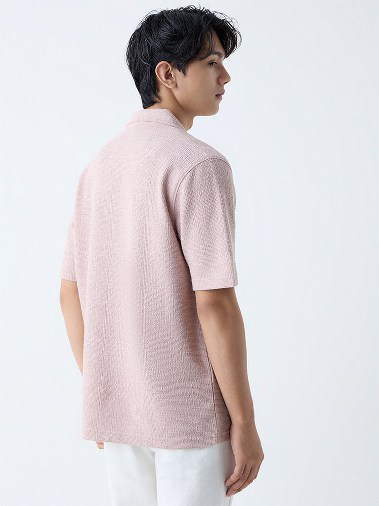 ETA Light Pink Self Relaxed-Fit Cotton-Blend Polo T-Shirt