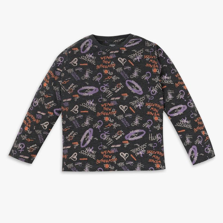 Experience the perfect blend of comfort and style with our Boys Full Sleeve Move T-Shirt. Crafted from 100% polyester, this t-shirt offers a lightweight and breathable feel, ensuring your child stays cool and comfortable all day long. The printed pattern adds a playful touch, making it a versatile choice for any casual outing.