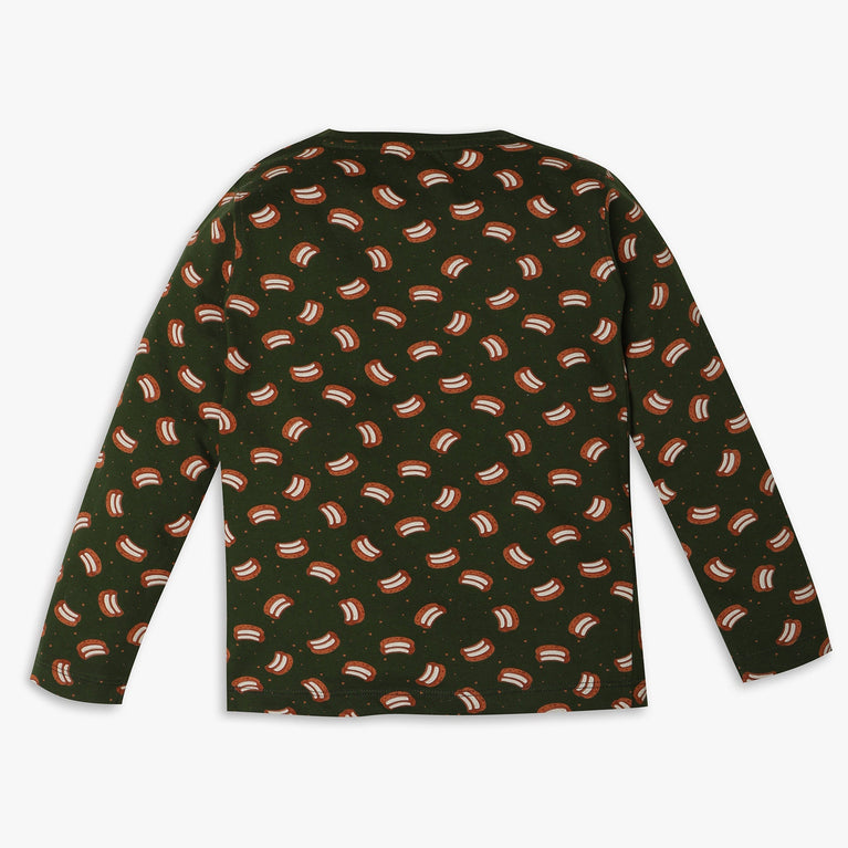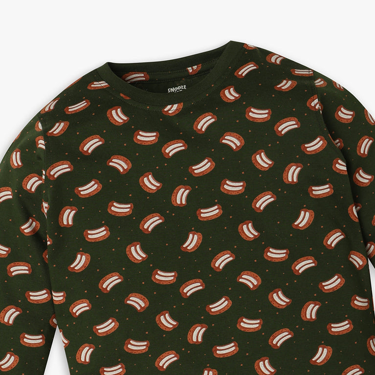These printed pattern t-shirt with pyjama sleepwear set has crew neck and full sleeve. Made from cotton, your kid's feel comfortable wearing the product.