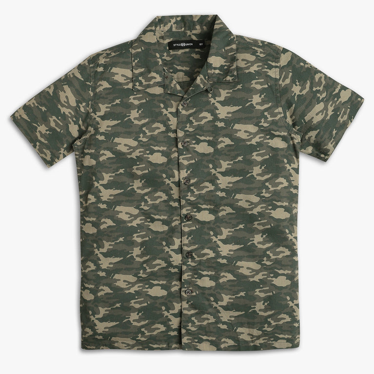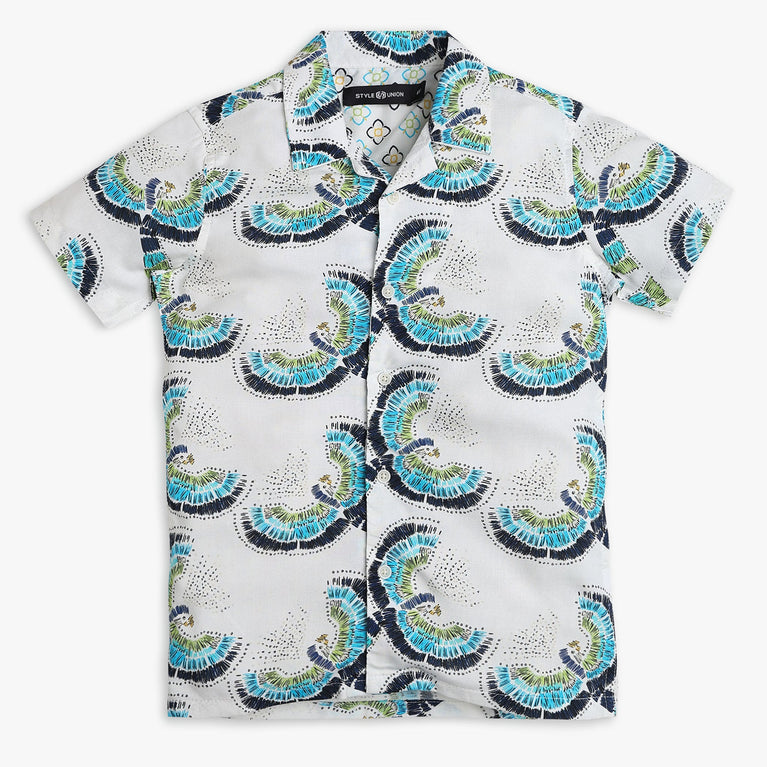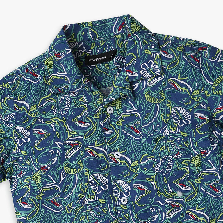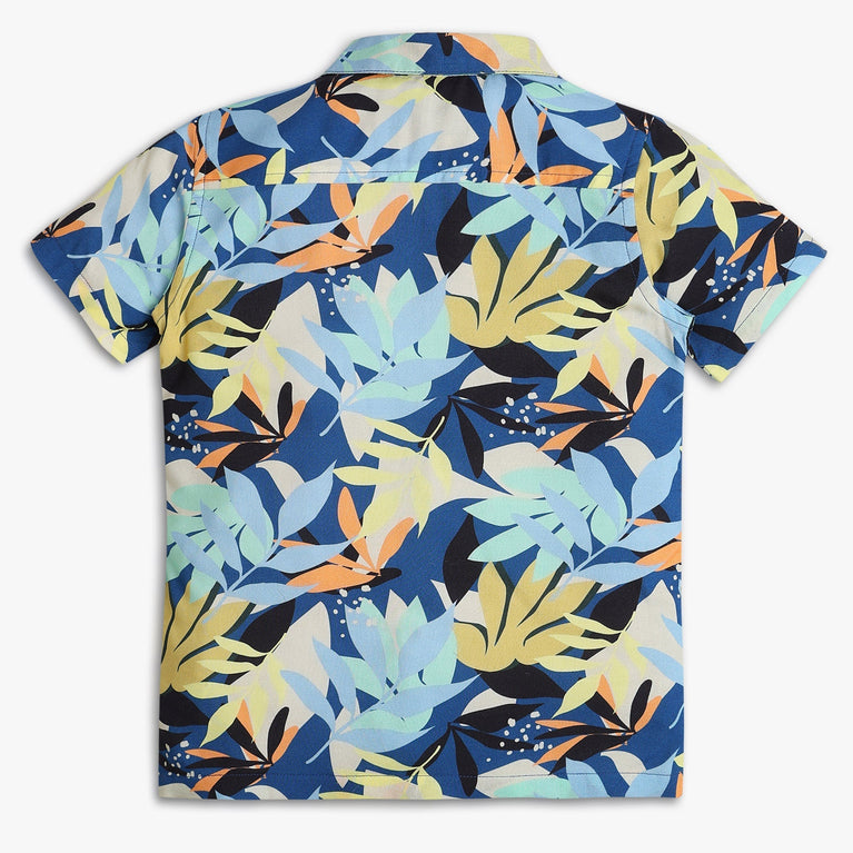 These printed pattern shirt has camp collar and half sleeve. Made from viscose, your kid's feel comfortable wearing the product.