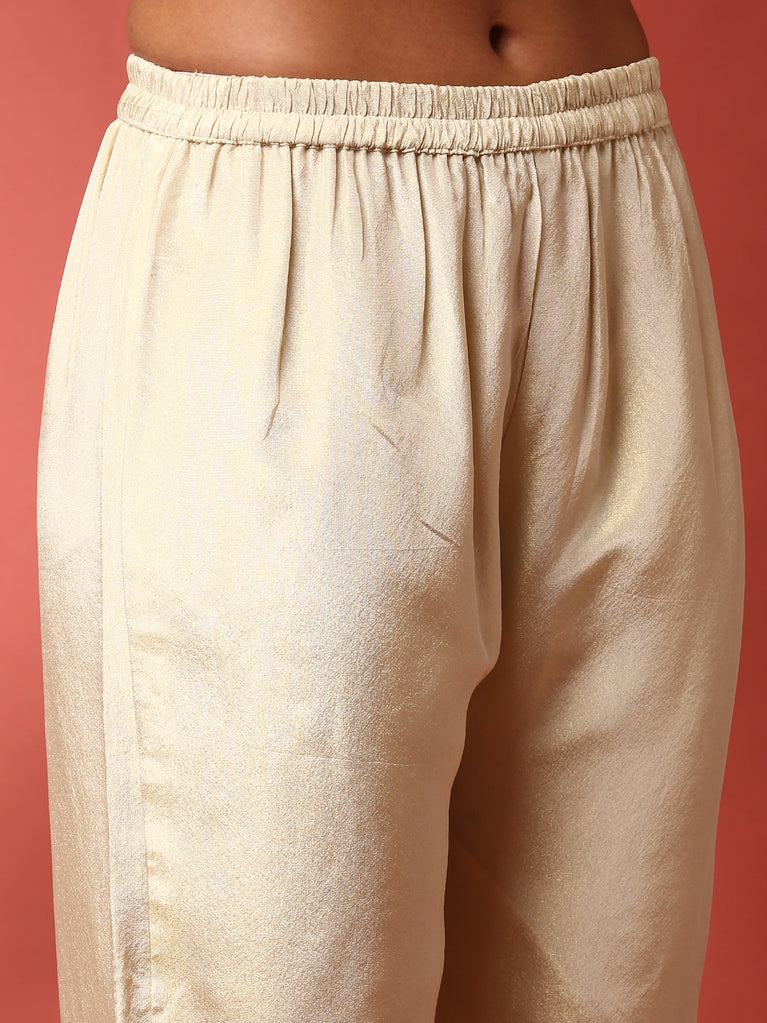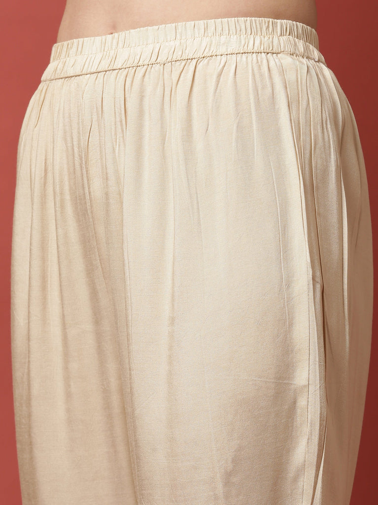 Elevate your ethnic wardrobe with this Cream Chanderi Embroidery Three Piece Set. Crafted from luxurious Chanderi fabric, it features delicate embroidery that adds a timeless charm. The set is thoughtfully designed for both comfort and elegance, making it perfect for festive occasions or sophisticated gatherings. Its breathable texture ensures ease of wear while maintaining an exquisite appearance.