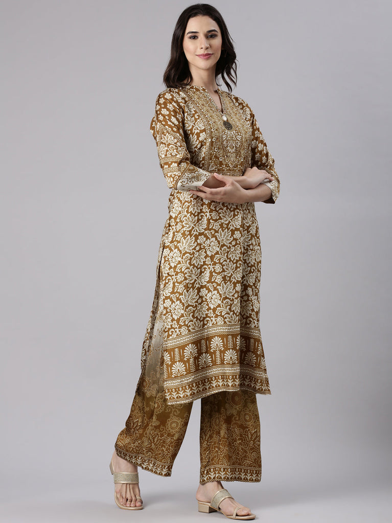 Experience timeless elegance with this Brown Muslin Printed Three Piece Set. Crafted from soft, breathable muslin fabric, it effortlessly combines comfort with style. The subtle printed design adds a refined touch, making it perfect for both casual and semi-formal occasions. This versatile set ensures you stay comfortably chic throughout the day.