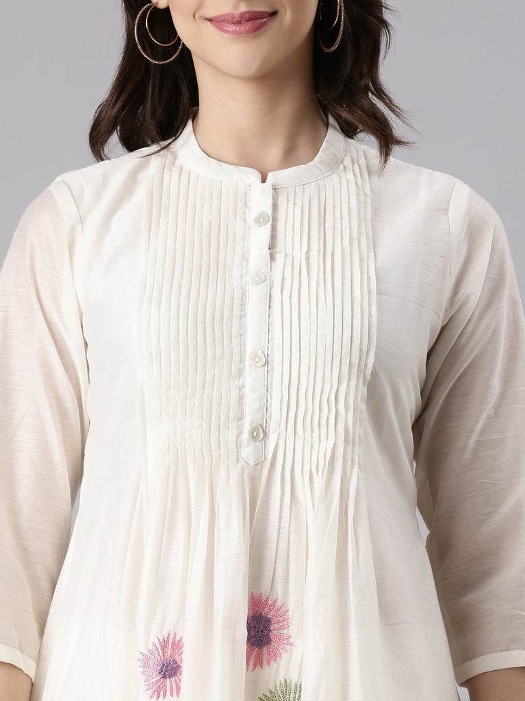 Elevate your ethnic wardrobe with this cream three-piece Anarkali set, crafted in delicate tissue fabric. Adorned with intricate floral thread work, it brings a refined elegance to any occasion. The lightweight fabric ensures comfort while the detailed embroidery adds a timeless charm, making it perfect for festive gatherings and special events. Embrace grace and style effortlessly with this exquisite ensemble.